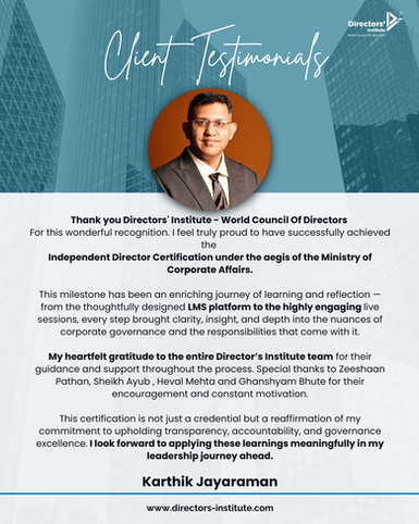At the Directors’ Institute – World Council of Directors, every appointment is a powerful validation of one belief -